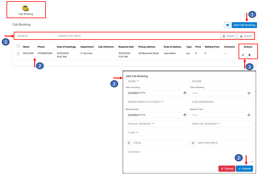 - Para agregar detalles para un nuevo registro, haz clic en el botón "Agregar Registro". Completa la información necesaria en el menú emergente, luego haz clic en "Enviar" para guardar la entrada.