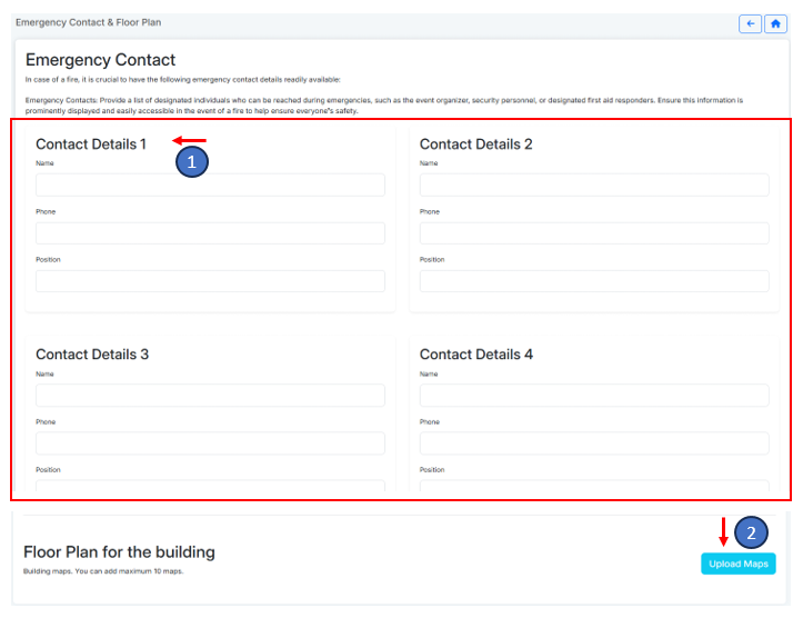 - En caso de una emergencia de incendio, los usuarios deben acceder al formulario de alerta de incendio haciendo clic en el botón "Alerta de Incendio". Dentro de este formulario, los usuarios tendrán acceso a todos los detalles de visitantes actualmente presentes en el edificio, facilitando su contacto y evacuación en caso de una emergencia de incendio.