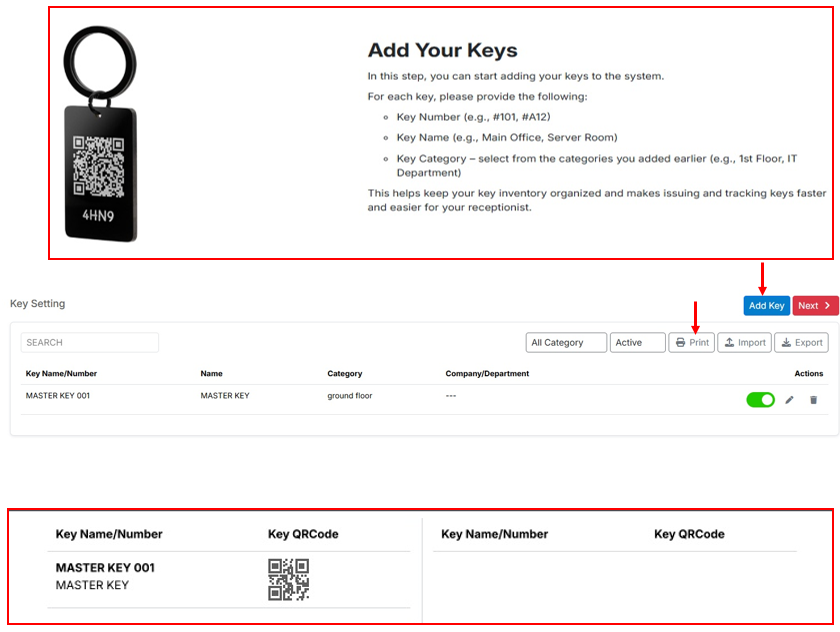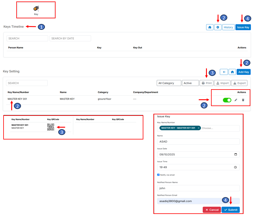 - Categoría (por ejemplo, Llaves de Oficina, Llaves de Vehículos, Llaves de Seguridad).