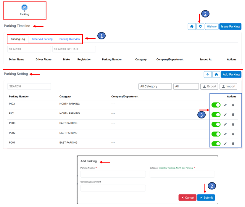 - Haz clic en "Estacionamiento" para crear un nuevo registro de espacio de estacionamiento.