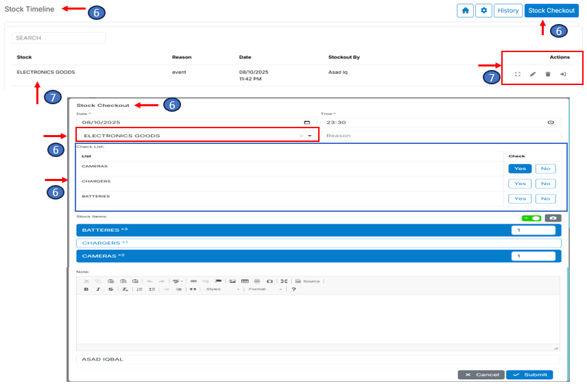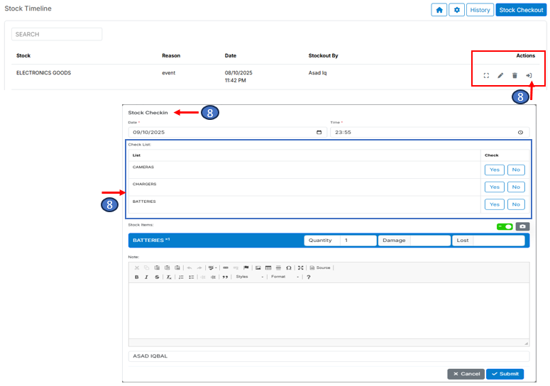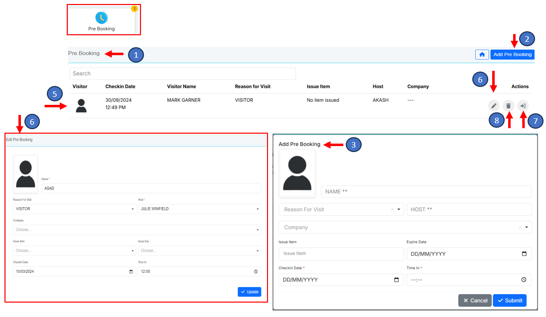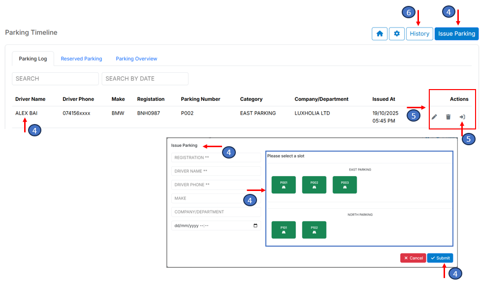- Los usuarios deben ingresar detalles precisos en la ventana emergente proporcionada antes de enviar el formulario "Registro de Entrada del Vehículo".
