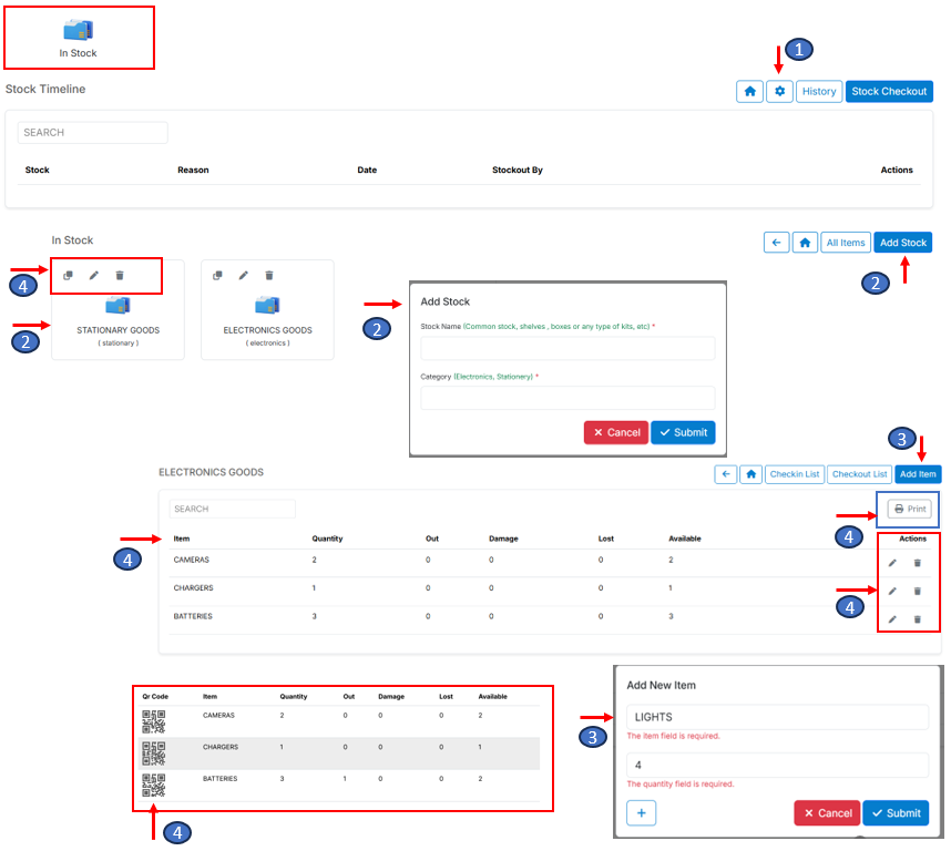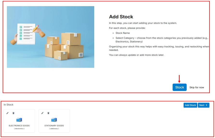 En este paso, el Administrador tiene la opción de crear registros para artículos de inventario utilizados dentro de la organización.