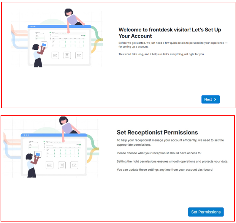 A continuación, el usuario debe seguir los pasos del asistente de configuración para completar los requisitos iniciales de la cuenta y finalizar la incorporación.