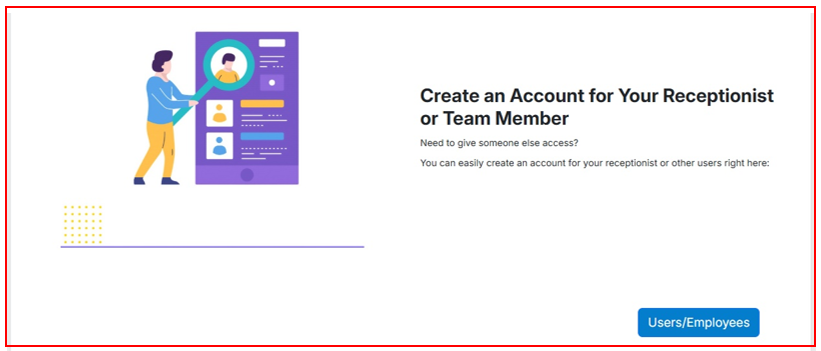 Una vez que se establecen los permisos, el Administrador puede comenzar a crear perfiles de usuario como Recepcionistas o cualquier otro rol dentro de la organización.