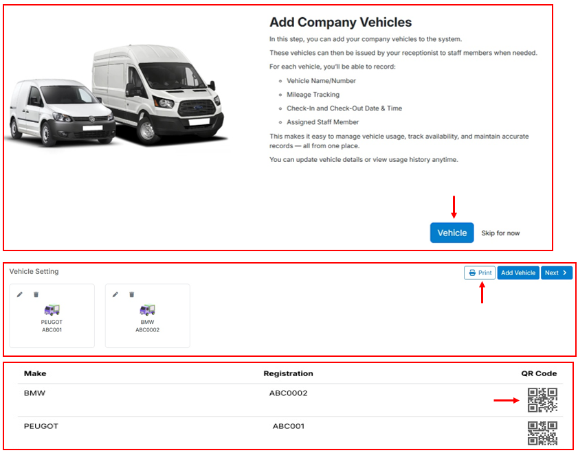 En este paso, el Administrador puede registrar todos los vehículos propiedad de la empresa en el sistema.